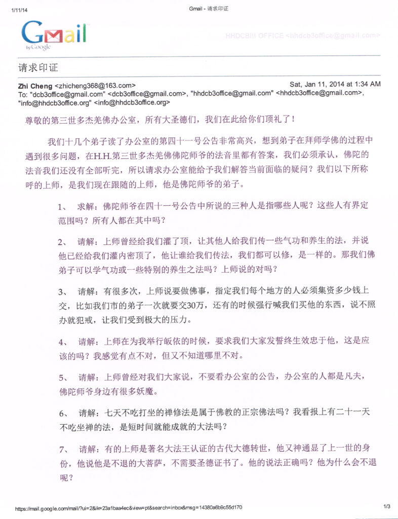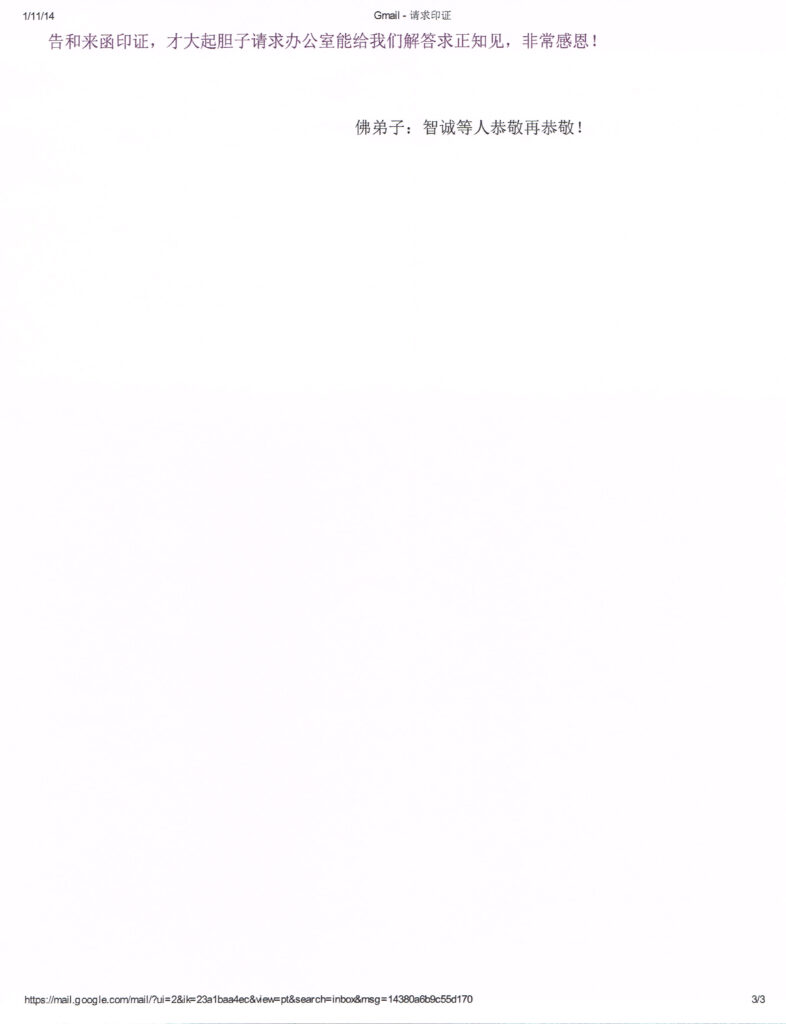 办公室收到了佛弟子智诚等人请求印证的来信: