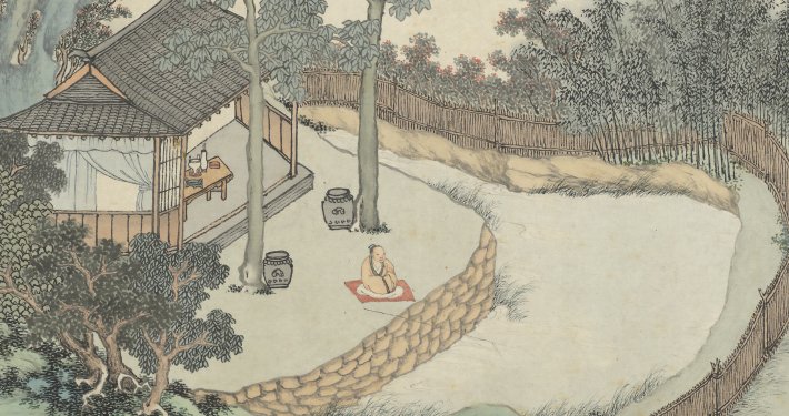 此《钓月亭图》卷传为明代沈周绘。画卷描绘湖石丛树之间的瓦顶长亭,亭前老翁坐于方席上,面对弦月形水塘,旁置一钓竿。对岸堤坡,柴篱围绕,仿佛别有与世隔绝的栖隐情怀。卷首右上角有满月一轮,掩映于清描淡写的流云之间,点出主题“钓月”诗意。 此卷现藏于台北故宫博物院。